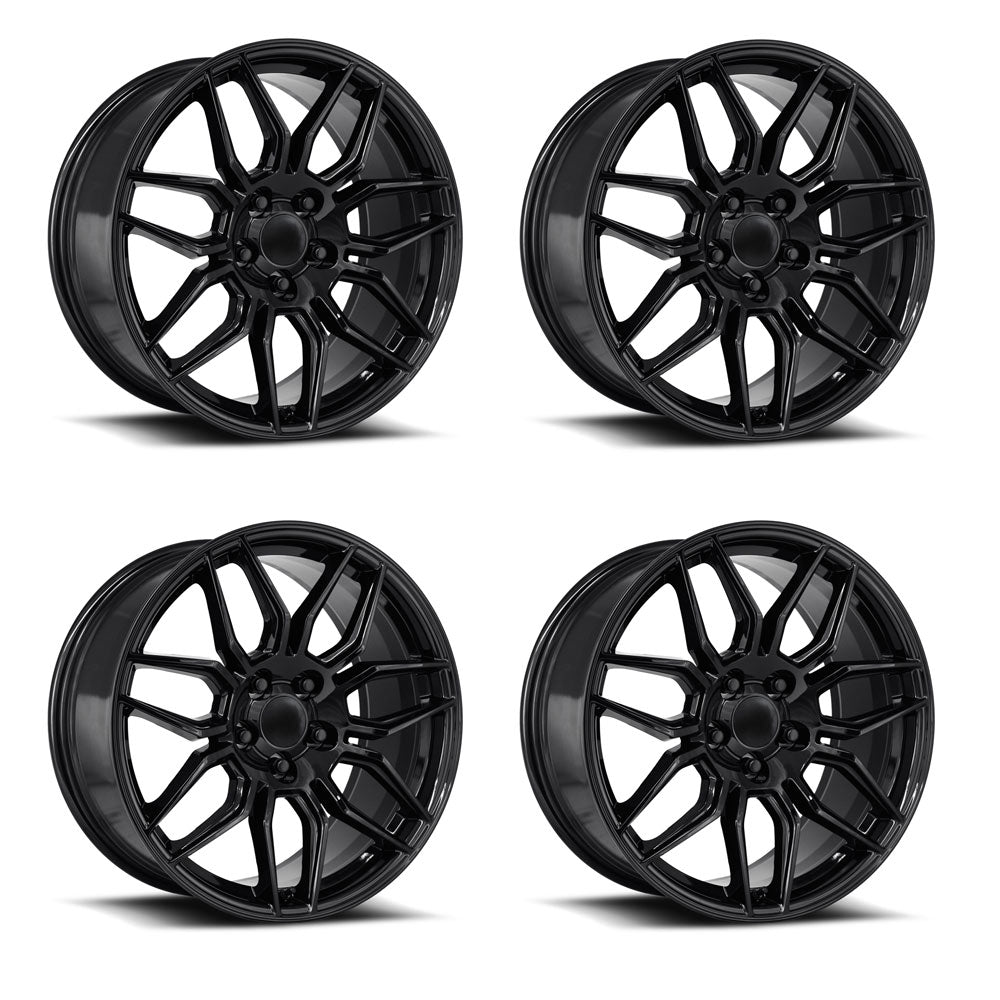 Factory Reproductions FR401F C7 Z06 Corvette 19" Front 20" Rear Wheel and Tire Package - Gloss Black