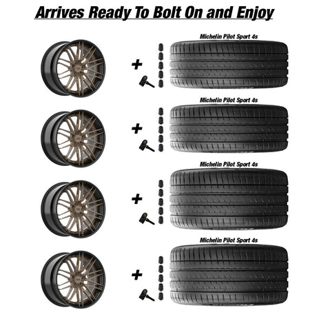 Forgedlite RS15 3pc C8 Corvette 20x9" Front 21x12" Rear Wheel and Tire Package - Bronze w/ Black Lip