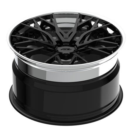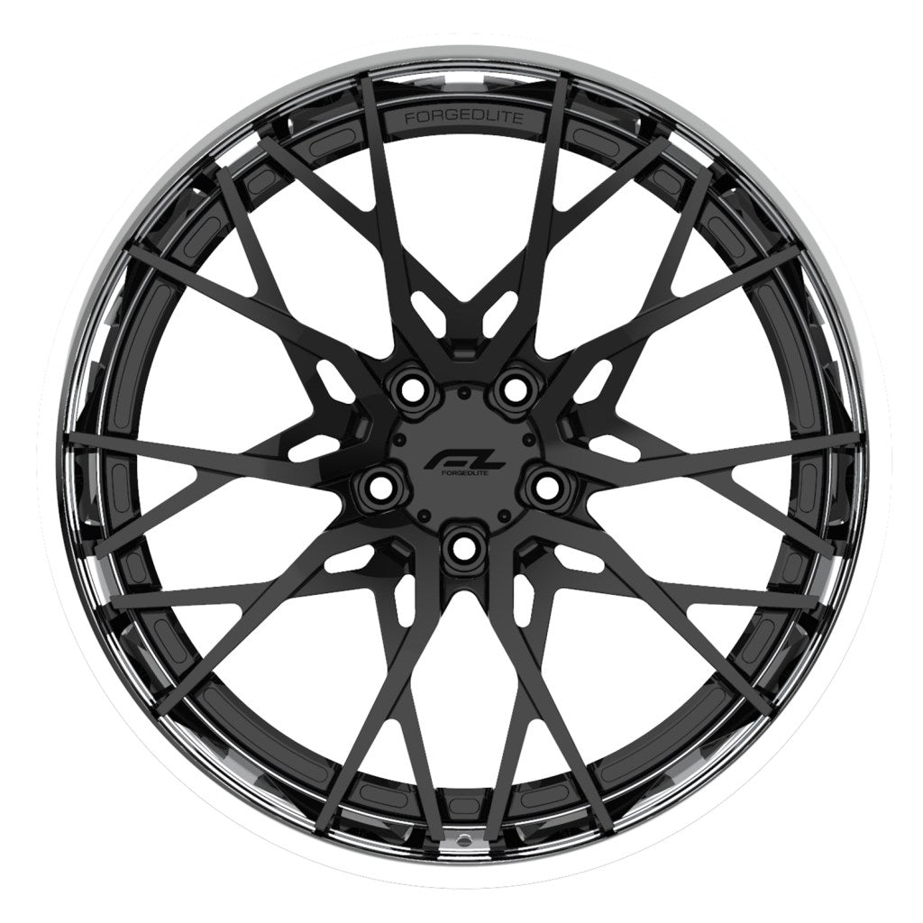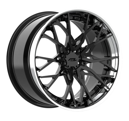 Forgedlite RS20 3pc C8 Corvette 20x9" Front 21x12" Rear Wheel and Tire Package - Gloss Black w/ Chrome Lip