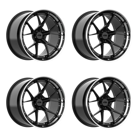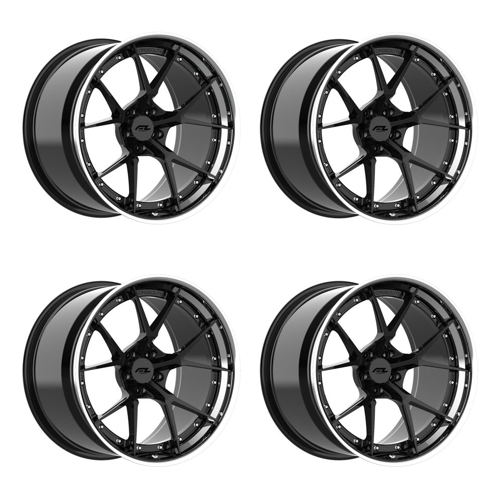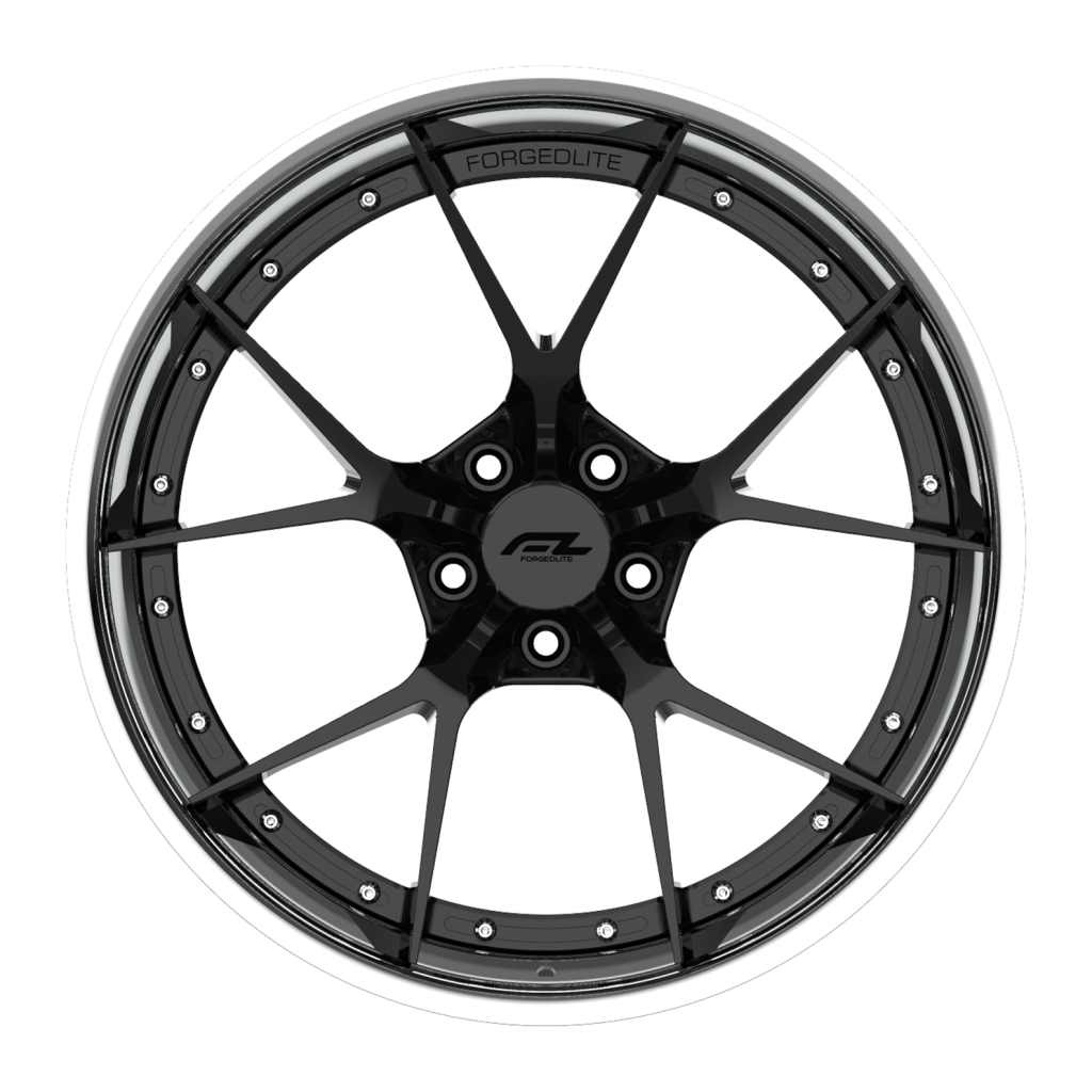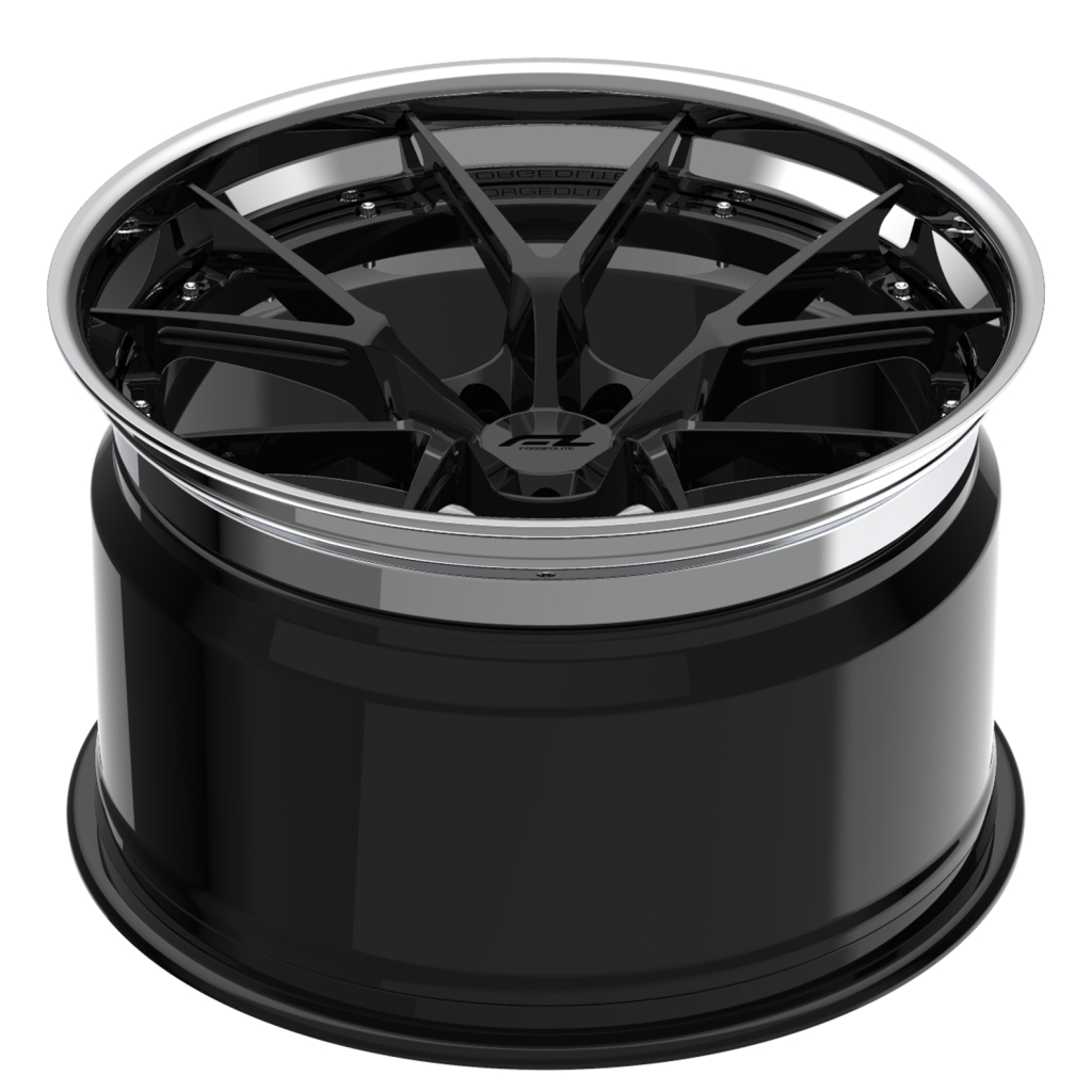 Forgedlite RS5 3pc C8 Corvette 20x9" Front 21x12" Rear Wheel and Tire Package - Gloss Black w/Chrome Lip
